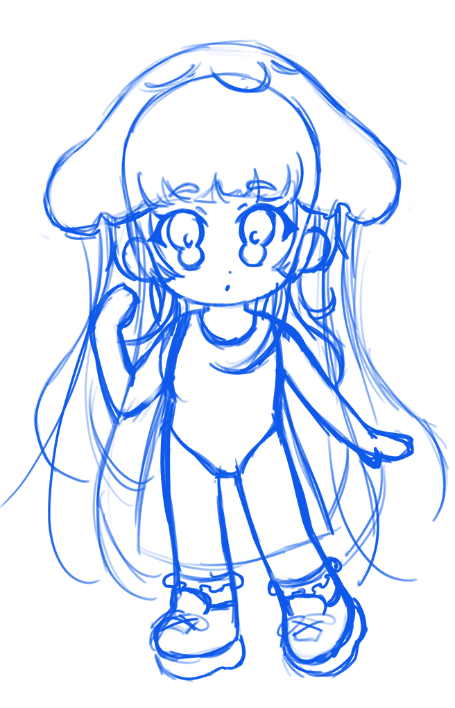 This project was also my attempt at creating my own blind box series, one centered around different sides of myself. For the three designs I developed, I started by using existing blind box figures as inspiration before sketching in Procreate. I created a base model and experimented with different hairstyles and outfits. Once the sketches were finalized, I moved on to line art and solid colors. I typically stick to solid colors since I add shading and shine later through layer styles in After Effects.